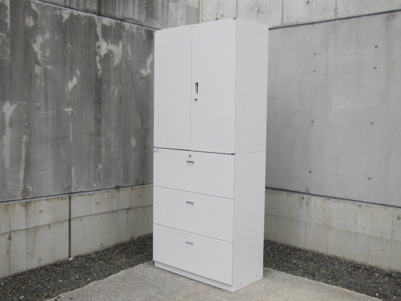 シンラインキャビネット 両開+3段ラテラル(A4 6段対応) ホワイト 現行モデル 中古