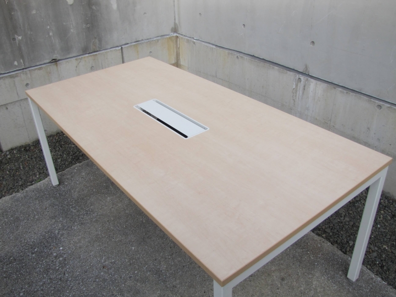 シンプルなフォルムと明るいデザイン、充実の配線機能を備えたミーティングテーブルとなっています。