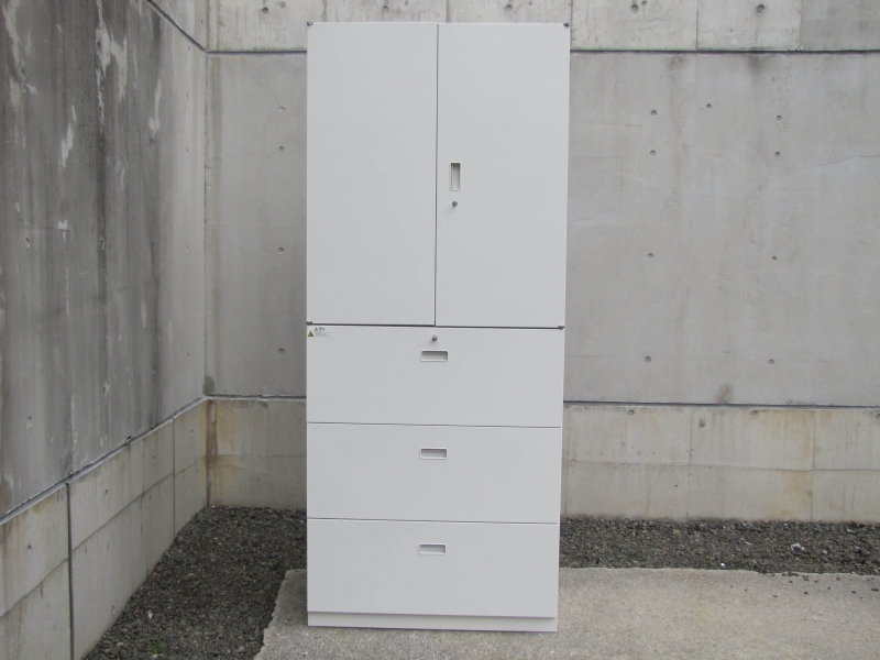 イトーキ社製のシンラインキャビネットシリーズよりラインナップされている両開きキャビネット+ラテラルキャビネットの上下セットです。