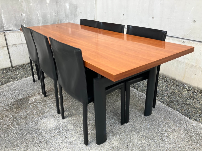• イタリア製 革張りチェア6点+テーブル W2100/D800 7点セット 中古