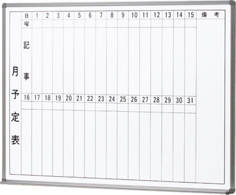 【販売終了】ホワイトボード(ホーロー) 月予定(タテ書) 壁掛 W1800/H900 新品