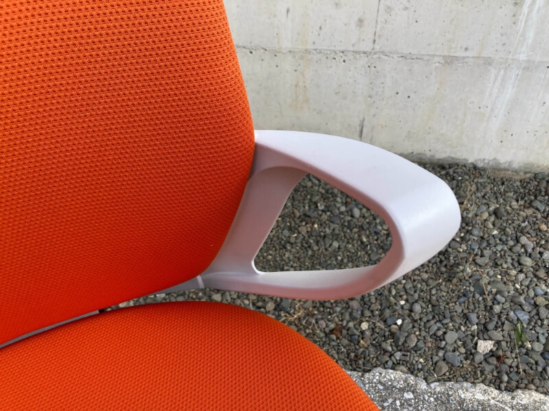 肘掛にはシェルと一体型のオフセットアームとなっており、邪魔にならずにチェアをデスクやテーブルに近づける事が出来るため姿勢の崩れを防いでくれます。