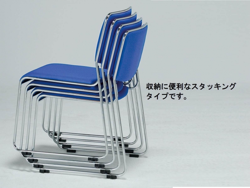 シンプルなフォルムでありながら、クロームメッキのスチールパイプフレームが、高級感を演出しています。フォーマル、カジュアルどちらの会議シーンにも使える万能なスタッキングチェアです。
