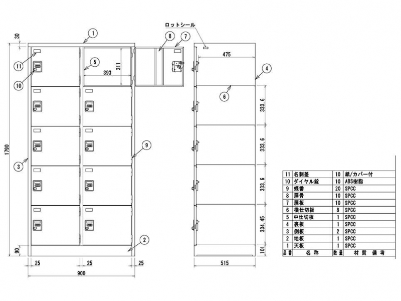 | 型番 | メーカー:アルプススチール 商品名:10人用ダイヤルロッカー 型番:SVG10K |